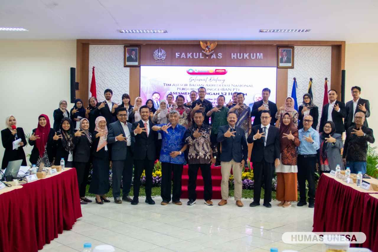 Program Studi S2 Hukum, Fakultas Hukum Universitas Negeri Surabaya, telah melaksanakan kegiatan Asesmen Lapangan (AL) dari Badan Akreditasi Nasional Perguruan Tinggi (BAN-PT) pada tanggal 7–9 November 2025. Kegiatan ini merupakan bagian dari proses akreditasi untuk menilai mutu dan kualitas penyelenggaraan pendidikan pada program studi tersebut.