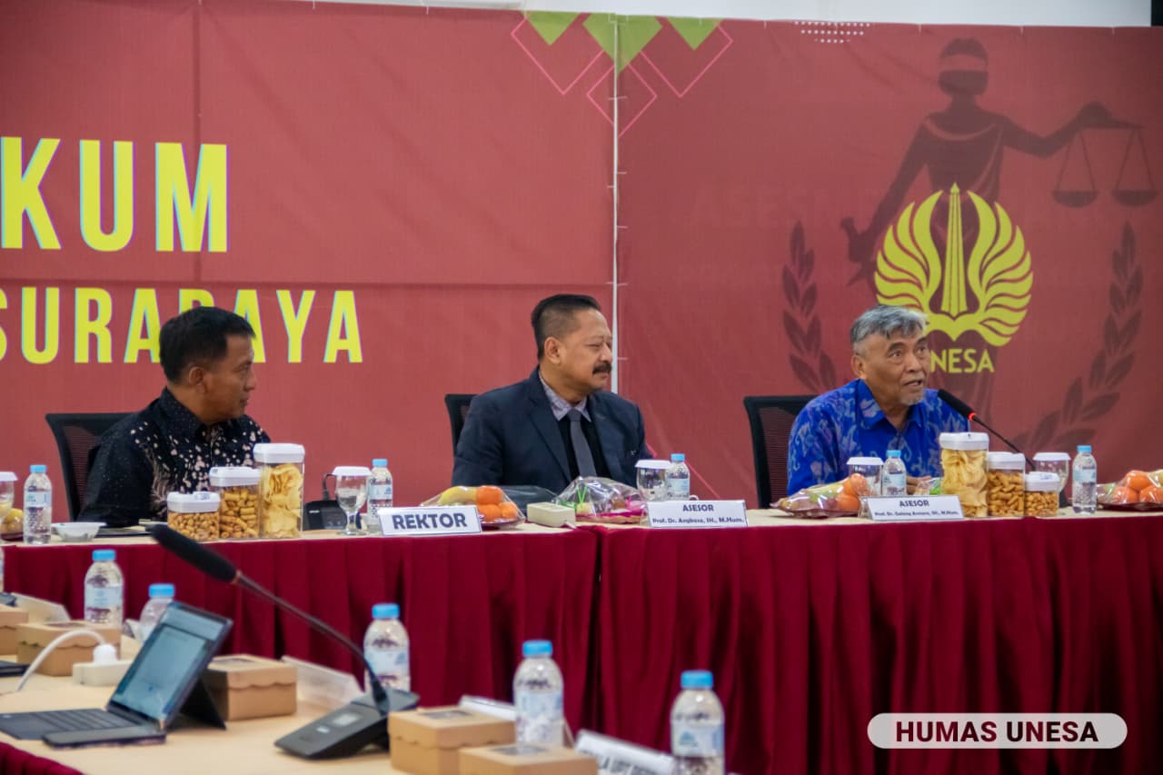 Asesmen lapangan dilakukan oleh dua asesor BAN-PT, yaitu Prof. Dr. Angkasa, S.H., M.Hum. dari Universitas Jenderal Soedirman Purwokerto dan Prof. Dr. Galang Asmara, S.H., M.Hum dari Universitas Mataram. Kedatangan asesor disambut oleh Rektor Universitas Negeri Surabaya Prof. Dr. Nur Hasan, M.Kes yang akrab disapa Cak Hasan dan Dekan Fakultas Hukum Arinto Nugroho, S.Pd., S.H., M.H, serta seluruh jajaran Dekanat, Dosen dan Tim Task force akreditasi.